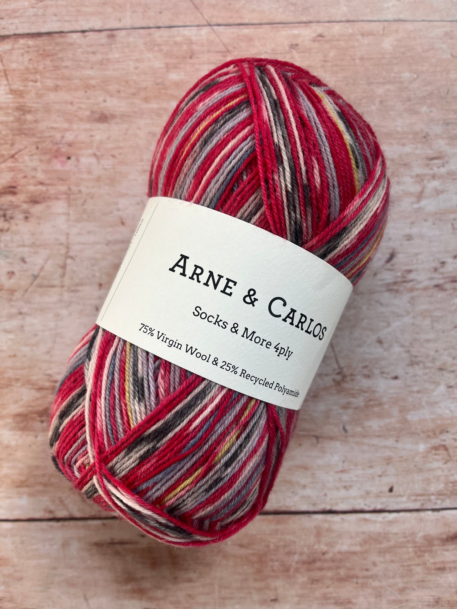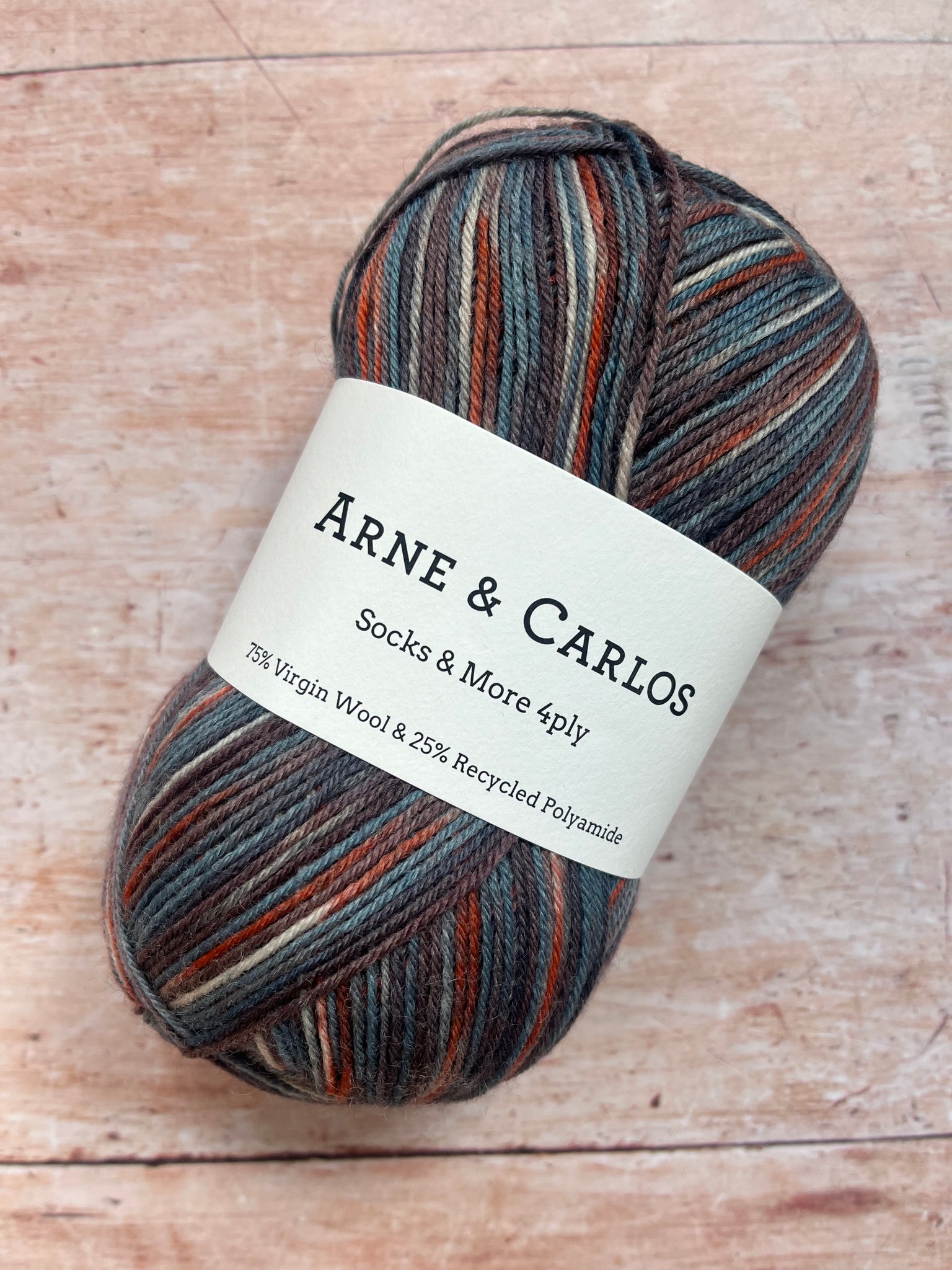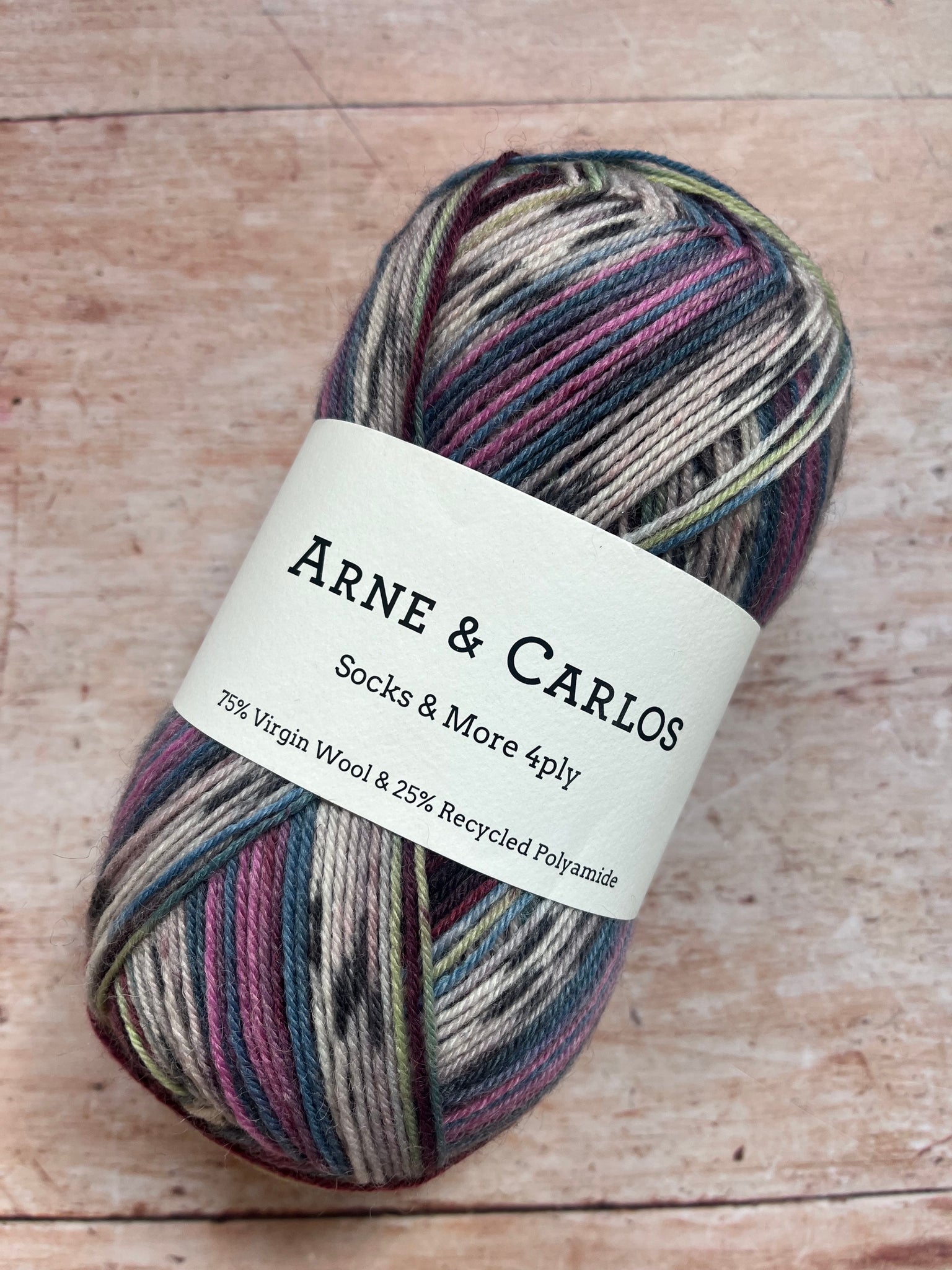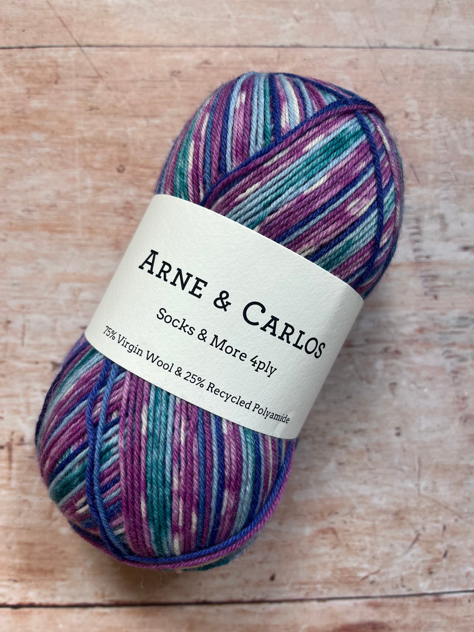Beautiful sock yarn from Arne & Carlos, perfect for hard wearing socks and machine washable at 40*.